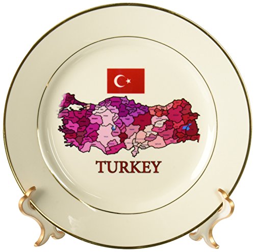 3dRose cp_178766_1 Map & Flag of Turkey with Provinces Labeled & Colored Porcelain Plate, 8"