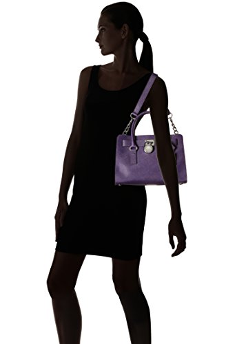 -. Binding : Apparel -. Brand : -. Color : Purple -. Department : womens -. EAN : 0887042718656 -. Feature : Gorgeous satchel in durable saffiano leather with brilliant silver tone hardware / Measures approx. 12 inch (W) x 9 inch (H) x 5 inch (D); detailed stitching / Two 18 inch handles with 5 inch drop; one 30 inch shoulder leather strap with chainlink detail / Open top with magnetic snap closure; large roomy compartment with MK signature fabric lining / Interior with one large zipper pocket and two slip pockets; signature sleeper bag included. -. Label : MICHAEL -. Manufacturer : MICHAEL -. Model : 30s3shms3l-535 -. MPN : NAM5236 -. PackageQuantity : 1 -. PartNumber : NAM5236 -. ProductGroup : Shoes -. ProductTypeName : BAG -. Publisher : MICHAEL -. Size : One Size -. Studio : MICHAEL -. Title : MICHAEL Hamilton East West Satchel Iris -. UPC : 887042718656