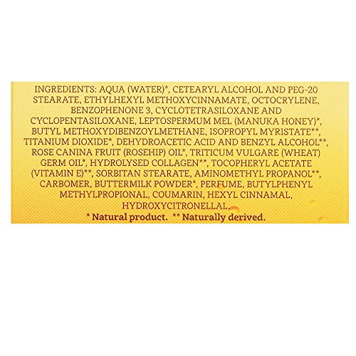 -. Feature : New version of the classical Wild Ferns Manuka Honey Replenishing SPF moisturizer / With pure Manuka Honey, Rosehip Oil, Wheatgerm Oil, Collagen and Hibiscus / For daily use to protect against environmental damage / No mineral oil not tested on animals