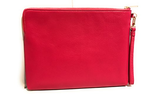 -. Brand : -. Color : Carnation Red -. Department : womens -. EAN : 0190041300617 -. Feature : Made of a pebbled leather exterior and a logo lined interior. / Detachable wristlet strap. / Exterior has a slip pocket and 1 zip pocket. / Measures approximately 11.75" long x 8.75" high x 0.5" wide. / Large and spacious clutch! -. Model : 34010 -. ProductGroup : Shoes -. ProductTypeName : HANDBAG -. Size : Large -. Title : Landon Carnation Red Leather Zip Wristlet/Clutch -. UPC : 190041300617