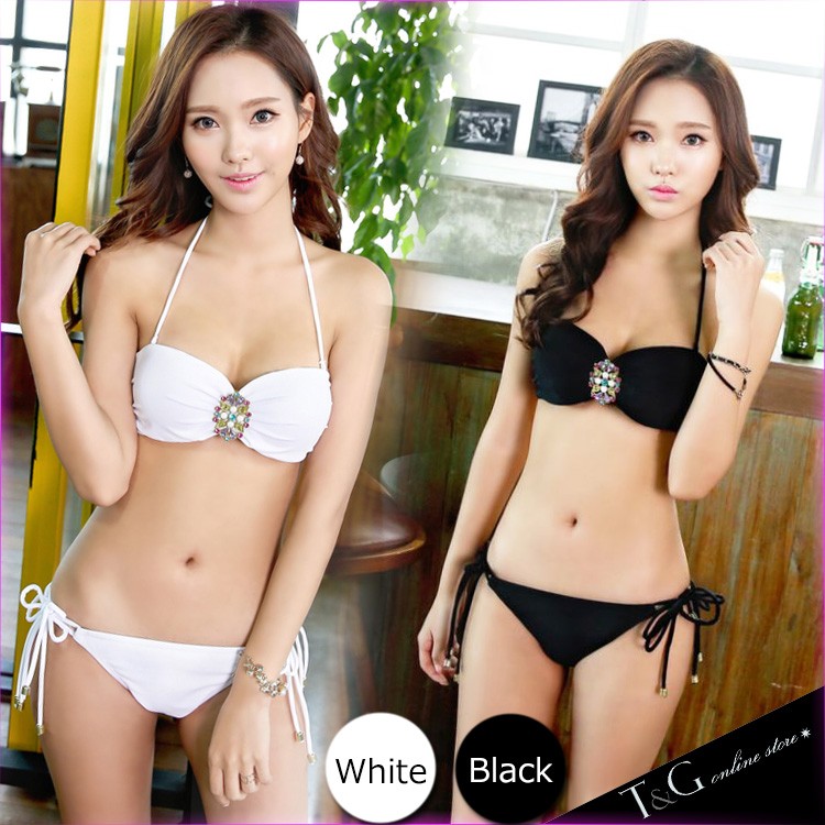 メール便送料無料 ビジュー付きバンドゥ ビキニ【ブラック/ホワイト】 素材:ポリエステル84%、ポリウレタン16% 仕様:◎ブラトップ仕様:ワイヤー入り、ブラパッド内蔵、パッド用ポケットあり、バックストラップ調節可能(上下白 上下黒 同色ビキニ) サイズ:Sサイズ(7号)/Mサイズ(9号)/Lサイズ(11号) カラー:ホワイト、ブラック 取り外し可能なビジューで2Wayに使える。1枚は抑えておきたいシンプルビキニ♪ショーツサイドのヒモでさりげないセクシーさを。