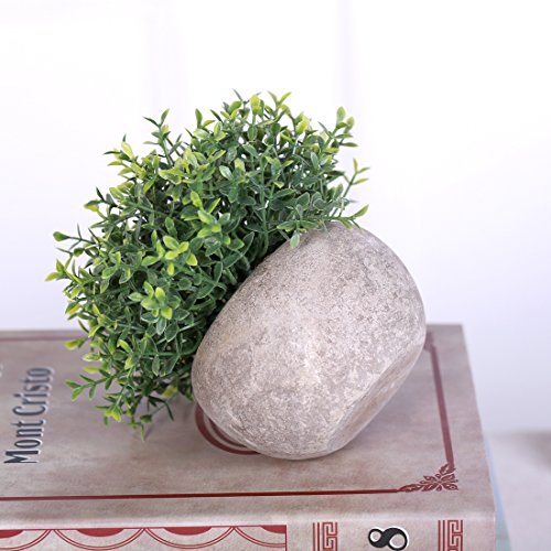 These plants are about the size of your hand and really accent any area well.The greenery looks really lifelike and the stone base is well made. Note:The pot is made of paper pulp, please don't put it in water.