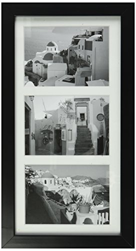 Golden State Art, 7x14 Black Photo Wood Collage Frame with Mat displays (3) 4"x6" pictures