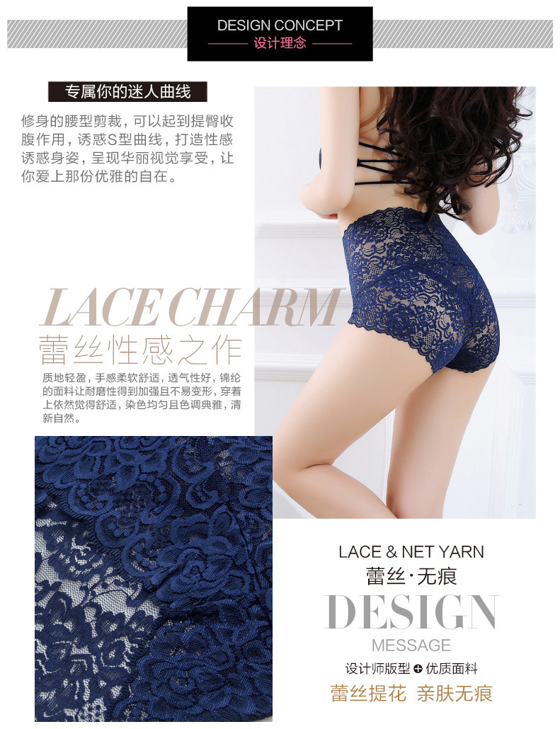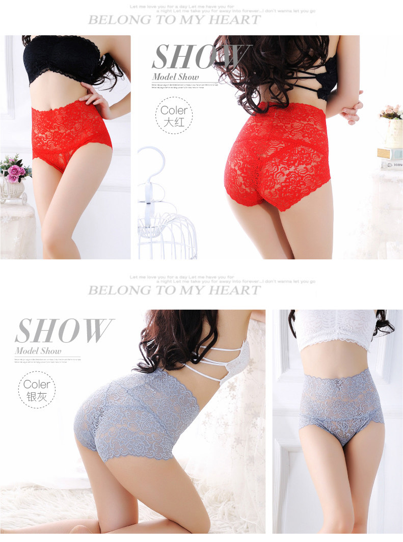 赤媚三条装 无痕收腹高腰性感内裤女诱惑蕾丝 舒适透明内裤三角裤