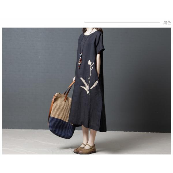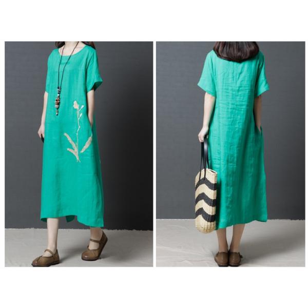 フラワー刺繍がワンポイントデザインになったマキシ丈ワンピース。