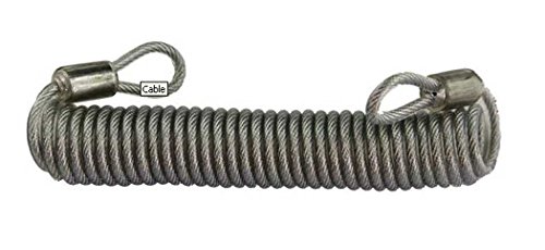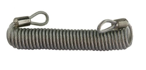 The cable is made from 3mm thick nickel plated steel cable, is only 11cm (4.5 inches) long when coiled, stretching to 180 cm (6 ft) and has a load capacity of 100 kgs. 0