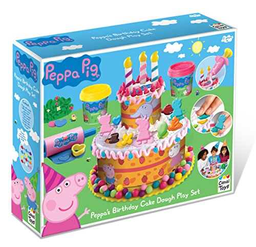 Introduction of Peppa Pig PEPP003 Birthday Cake Dough Play Set. Create your own Peppa birthday cake in dough. Invite your friends and organise a real party. Product Features: 1 Cake with moulds. 1 Whipped cream piping tool. 3 Cutting moulds. 1 Pastry wheel. 4 Dough packs. 1 Handle roller. 1 Candle mould. 2 Tools. Create new colours by mixing the dough. 4x80gram pots of dough compound. Suitable for ages 3+. Get creative and get baking with Peppa Pig's Birthday Cake Dough Play Set. This is a fantastic and fun way for your child to get creative with different dough molds and cutting tools to create a fantastic birthday cake. Mix the dough together to get different colours and use the various accessories to make a colourful cake. The play set comes with a cake tier, 1 whipped cream piping tool, cutting moulds, 1 pastry wheel, 1 handle roller, 1 candle mould and 2 tools.Feature