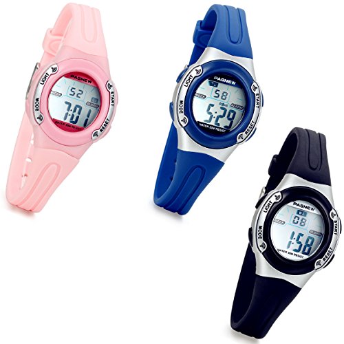 -. Title : Lancardo Digital Chronograph Alarm Date Oval Shaped Resin Strap Watch with Backlight(Blue)