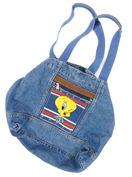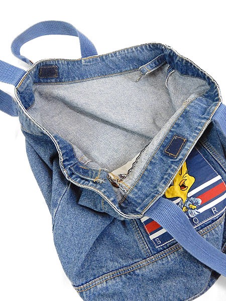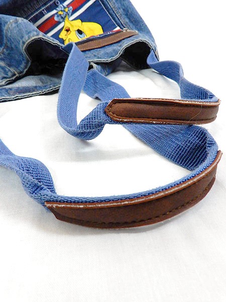 Goods&Antique ブランドLooney Tunes ルーニーテューンズ カラー色落ちブルーデニム(水色ベース) メール便不可 コンディション★★★ 素材コットン 表記サイズ記載なし スタッフコメント※内側に数ミリのシミ汚れが2か所あります。 実寸サイズ 縦 35 cm 横 54.5 cm マチ 19 cm ベルト 68 cm