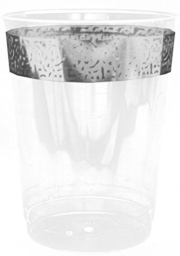 -. Title : Inspiration Clear with Silver Lace Rim 10oz. Heavyweight Plastic Tumblers 10 Count