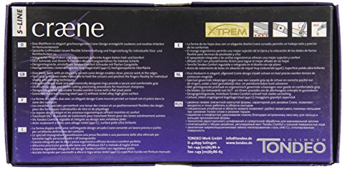 Special recessed grips (2) make it possible to hold scissors and position the fingers flexibly for individual slicing and pointing techniques^Integrated finger hooks and ergonomically designed rings provide a secure and comfortable grip^Extremely hard non-alloy nickel ball bearing steel