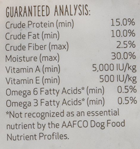 -. Feature : Made with 100% USA-Sourced chicken, beef, or lamb / Soft and easy to break / Added flaxseed and vitamins promote holistic wellness / No grains / No artificial colors, flavors, or preservatives