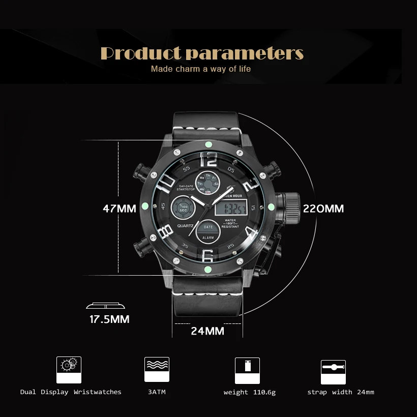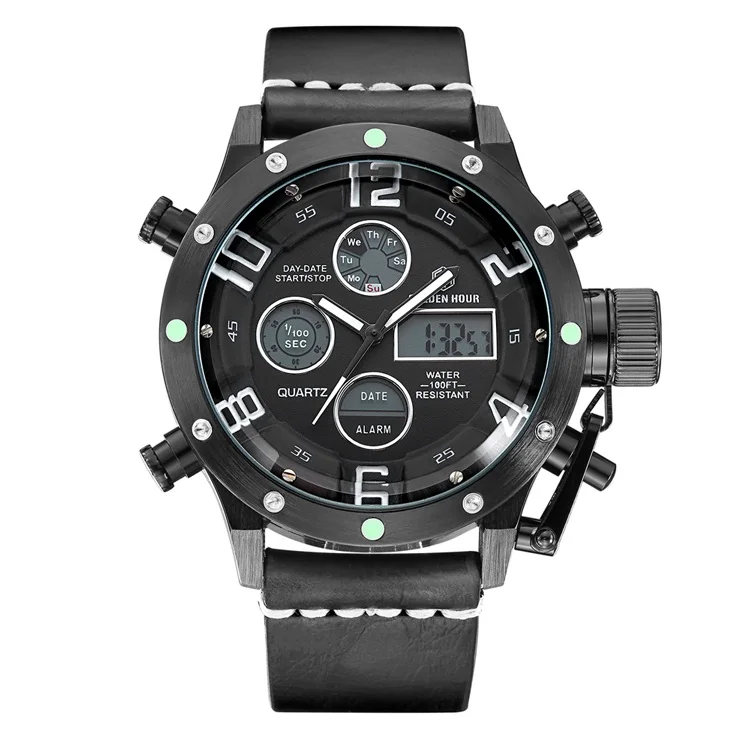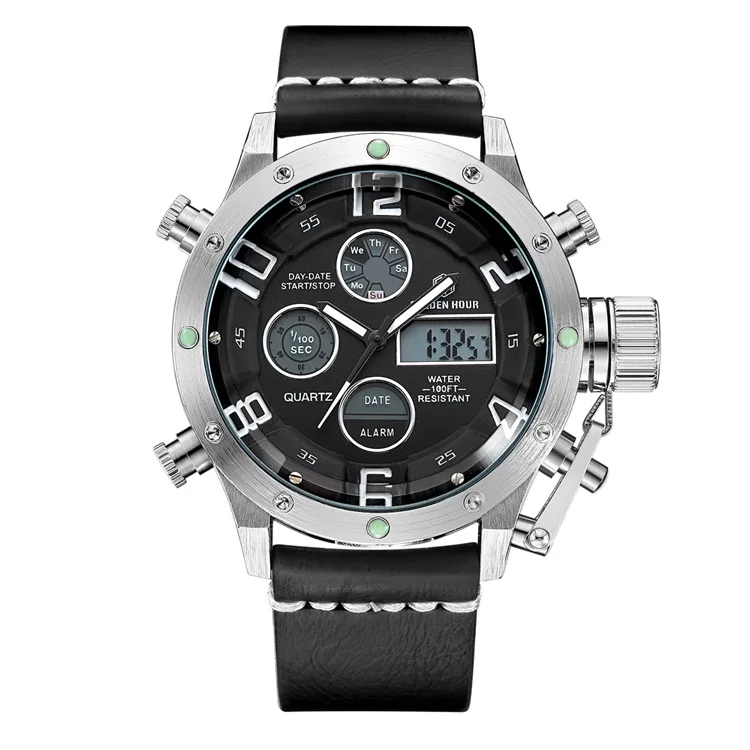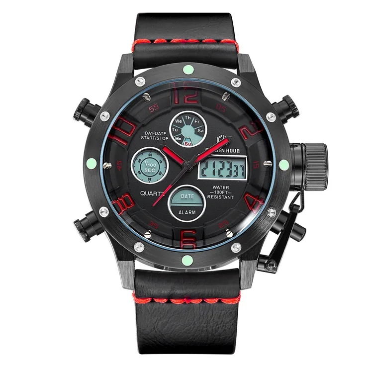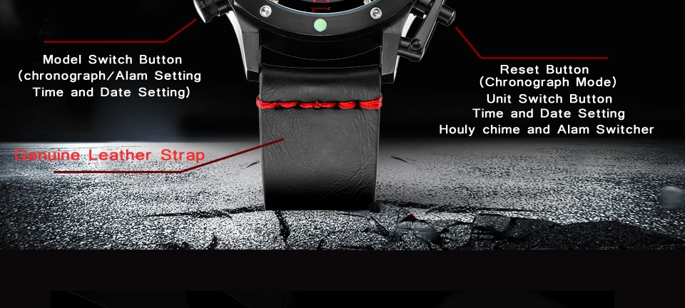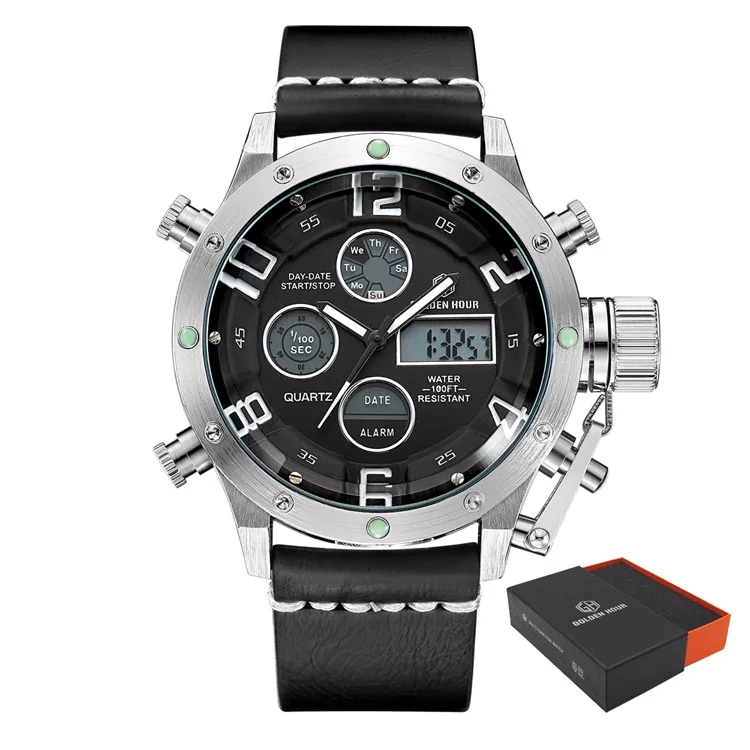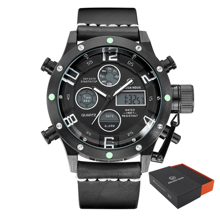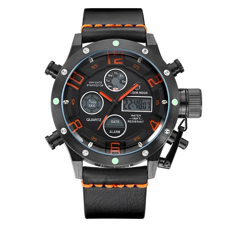 Feature:Water Resistant,LED display,Multiple Time Zone,Stop Watch,Back Light,Complete Calendar,Shock Resistant,Chronograph,Perpetual Calendar,Auto Date,Week Display,Rattrapante,Alarm