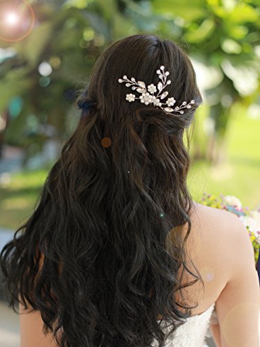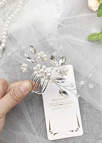 Missgrace Bridal Vintage Hair Comb Wedding Flower Crystal and Rhinestone Simple Hair Comb Wedding Hair Accessories