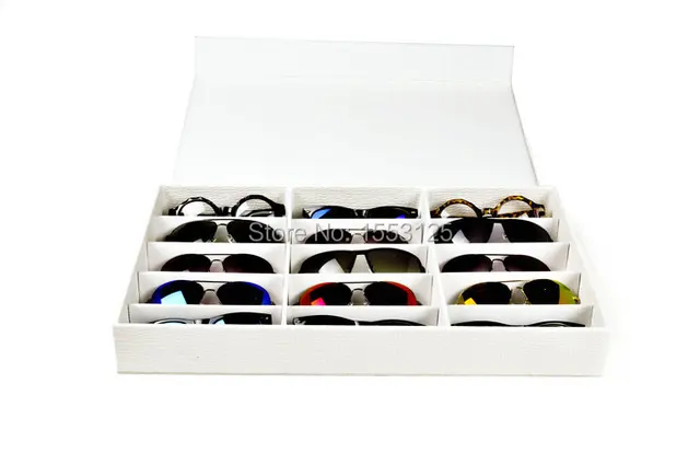 15 그리드 선글래스 디스플레이 상자 PU 가죽 두 색 eyewearbox 보석, 시계, 액세서리 디스플레이 상자 가족 및 bussiness