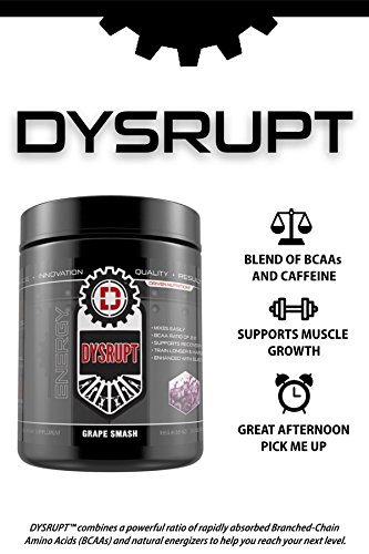 -. Feature : 2:1:1 BCAA RATIO- The perfect ratio of branch chain amino acids (BCAA's). The BCAA's in Dysrup work to promote muscle recovery and prevent muscle breakdown while Taurine works to promote mental focus and helps to prevent muscle cramps. / ENHANCED WITH CAFFEINE AND ELECTROLYTES- Each scoop delivers 120mg of caffeine, raising alertness and focus to get you ready for activity! / MORE VERSTILE THAN OTHER PRODUCTS: Dysrupt is so versatile it can be used in the morning to provide essential amino acids and stimulate metabolism with natural caffeine. It can be used as a preworkout, ideal for those that train later in the day and don't want an over stimulated product that will keep them awake or stacked anytime with your favorite drinks!