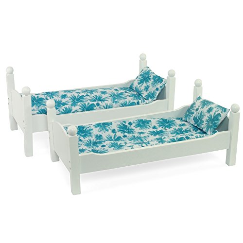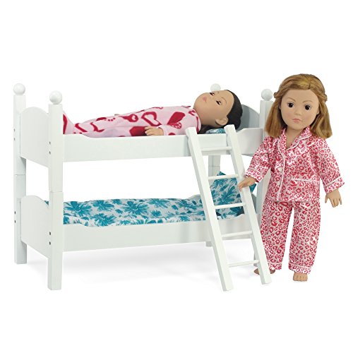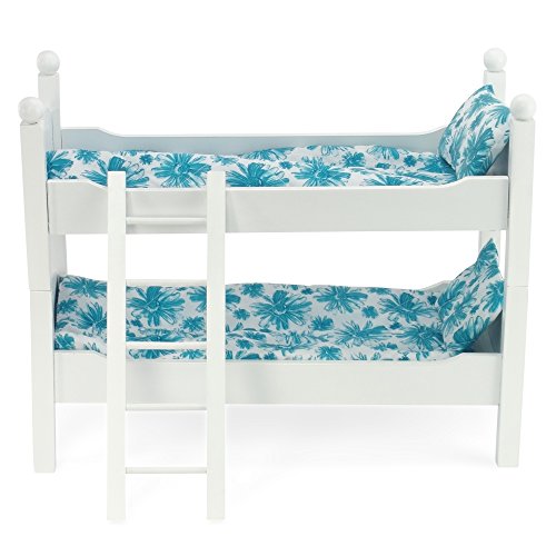 -. Title : White Bunk Bed Doll Furniture | Fits 18" Inch American Girl Dolls | Includes Vibrant Blue Floral Bedding and Mattresses