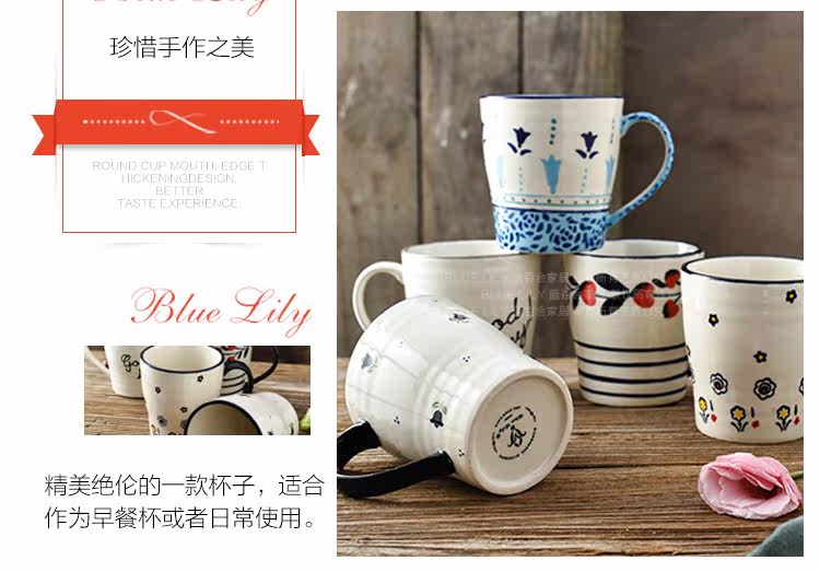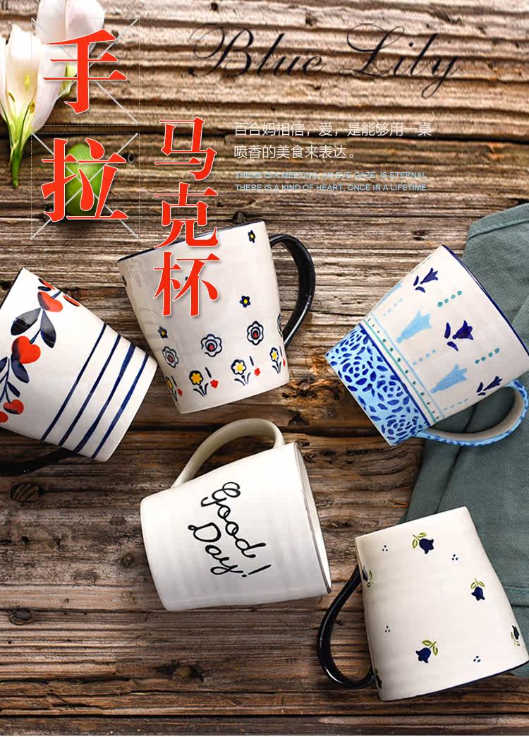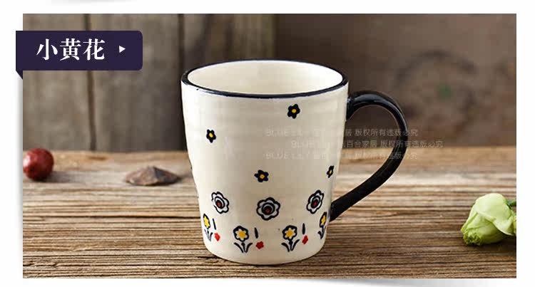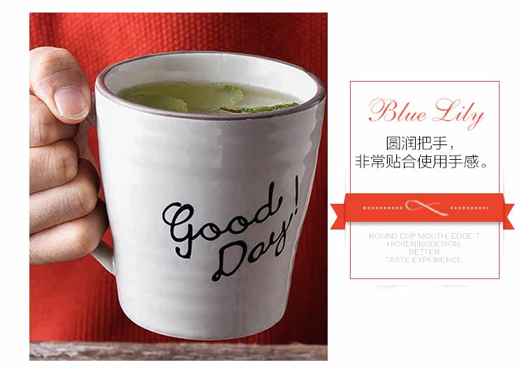 创意暗纹把手奶杯 马克杯可爱小水杯 陶瓷早餐杯家用咖啡杯奶茶杯