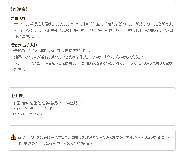 材質:本体-プリント紙化粧繊維板、前面-合成樹脂化粧繊維板(PVC真空貼り)