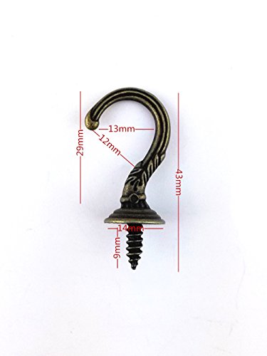 -. Feature : Vintage carving screw-in hooks hanger / Color: bronze / Total length: 43mm; Open mouth: 12mm; Screw length: 9mm / Easy installation / Pack of 20