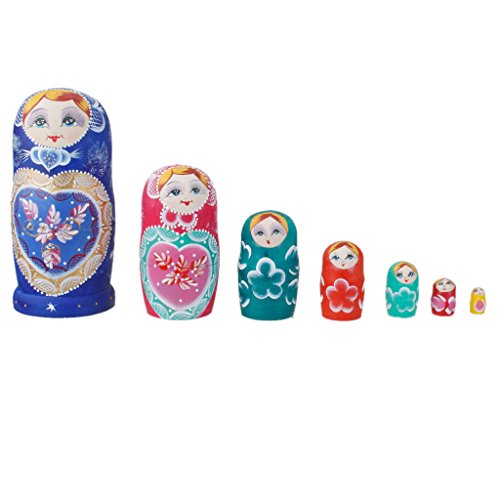 -. Title : Dovewill Set Of 7 PCS Wooden Hand painted Heart Pattern Russian Nesting Doll Kids Toy Gift