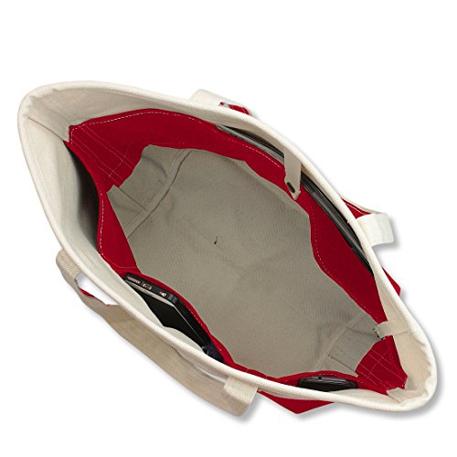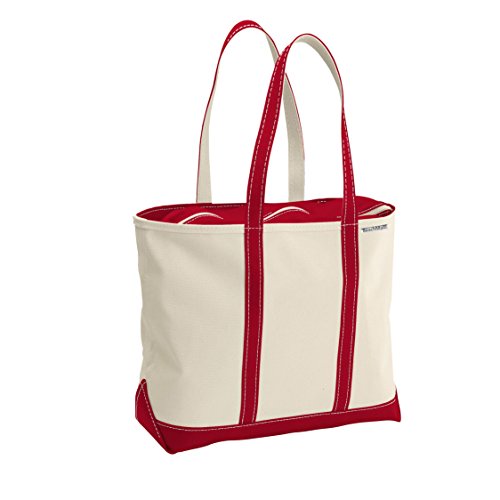 -. Brand : BeachMall -. Feature : Red and heavy duty 24 oz natural canvas material with storage compartments inside. Double-layer base. Handles tested to hold up to 500 pounds. This quality tote is designed to stay organized, withstand tough use and to last for years! This premium natural canvas has tighter weave construction making it more durable and sturdier compared to most canvas bags. Must See to Believe it! / This tote will not rip off! The high handle drop straps are stitched to the base, Double stitched top hem, and piping stitching around exterior edges for added strength & durability. Plus extension to bottom for added load capacity. Overlapped seams double-stitched. Neatly-stitched seams give it a clean look. This bag will last for years! -. ProductGroup : Apparel -. ProductTypeName : LAGE -. Title : Deluxe Medium Heavy Duty 24oz Natural Canvas Boat Tote / Beach Bag