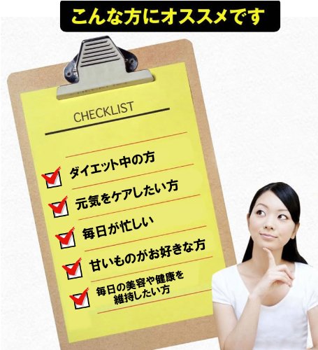 ●ダイエット中の方、元気をケアしたい方、毎日が忙しい、甘いものが好きな方、美容や健康を維持したい方へオススメのサプリです。