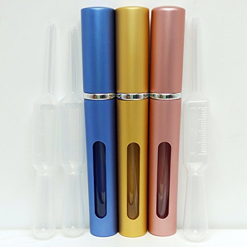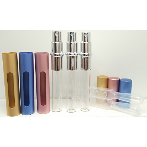 ❤Empty Bottles: Made of glass inner bottle and aluminum outer shell, good protection for you perfume, not easy broken. Each bottle could fill 5ml of perfume, only 17g/pc, lightweight and small. You can take it in your purse, pocket or backpack to travel anywhere.