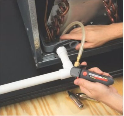 -. Brand : Homiom -. EAN : 0733520636656 -. Feature : Small lightweight package- No heavy air or nitrogen tanks needed / Clears out condensate drain lines - uses CO2 with no mess from water back-flushes / Environmental friendly - 4 CO2 oil free food grade 16 grams cartridges included / Maneuvers through cabinets and hard to reach areas with flexible assembly hose -. Label : Homiom -. Manufacturer : Homiom -. ProductGroup : Kitchen -. ProductTypeName : KITCHEN -. Publisher : Homiom -. Studio : Homiom -. Title : Drain Gun- 4 CO2 cartridges included for A/C Condensate Lines by Homiom -. UPC : 733520636656