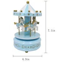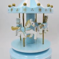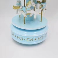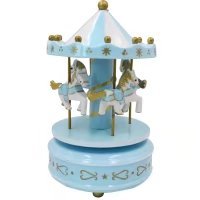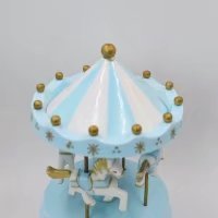 Birthday Cake Decoration Merry-Go-Round Musical Box Carousel Horse Music Box(Blue)