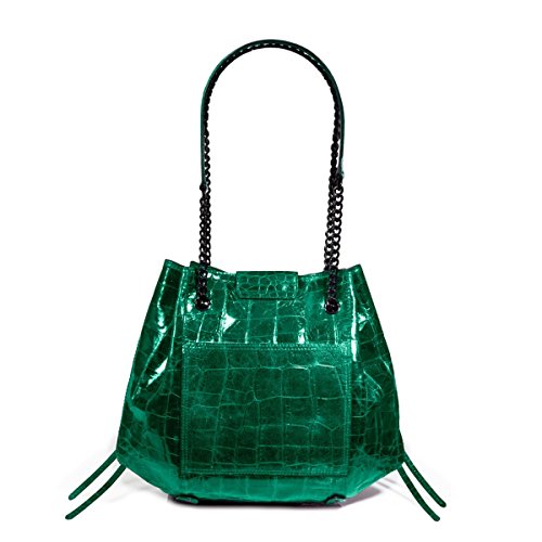 - Croc embossed leather mid-size bucket hobo is functional and sleek. Pull chain accordion construction opens wide to permit easy access