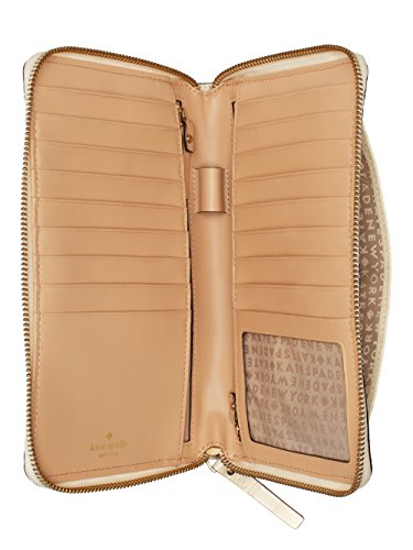 textured leather with matching trim continental zip travel wallet wallet opens flat 17 credit card slots, one id slot, two zipper compartments, one pen slot and exterior slide pocket 5.3"h x 8.7"w x 0.8"d Brand : kate spade new york EAN : 0098689825441