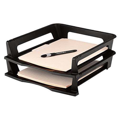 -. Title : Rolodex Regeneration Recycled Plastic Front-Load Letter Tray, 2-Tray, Black (21858)