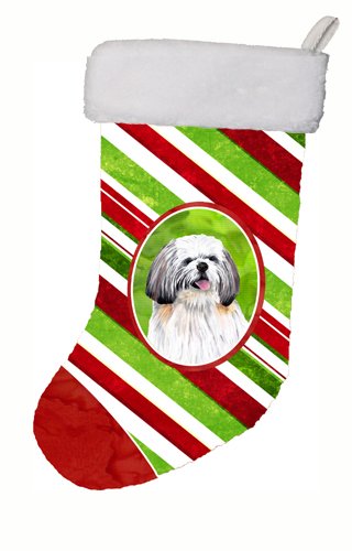 Caroline's Treasures Shih Tzu Candy Cane Holiday Christmas Stocking, 11 x 18", Multicolor