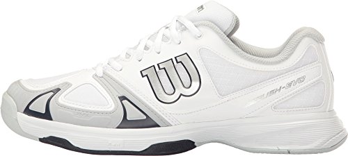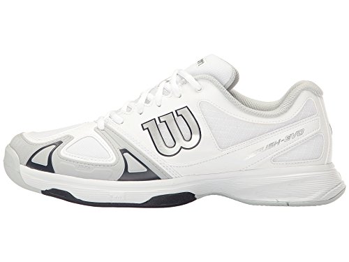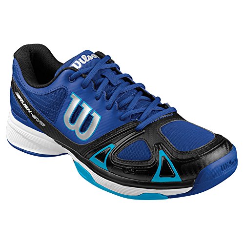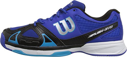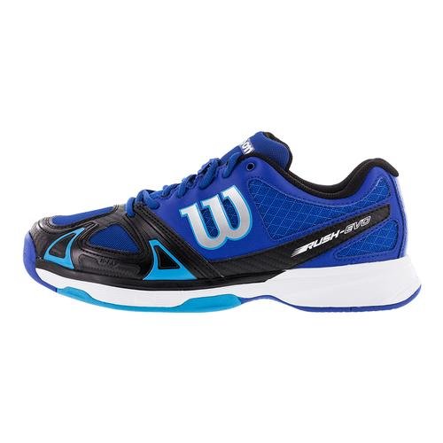 Studio : WILSON Publisher : WILSON Binding : Misc. Product Description The Wilson Rush EVO Men's All Court Tennis Shoe is incredibly light and low to the ground, providing smooth feel while moving side-to-side and up-and-back. You'll also feel the enhanced forefoot support that helps propel you around the court. Features 2D-F.S, Dynamic Fit-DF2, R-DST and Duralast technologies. Color: Surf the Web/Black/Scuba Blue. Weight: 12.4 oz. MFG#: WRS320670. 0