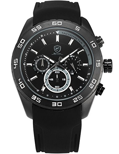 Shark Mens SH260 Spinner shark Analog Quartz Chronograph Black Silicone Band Wrist Watch