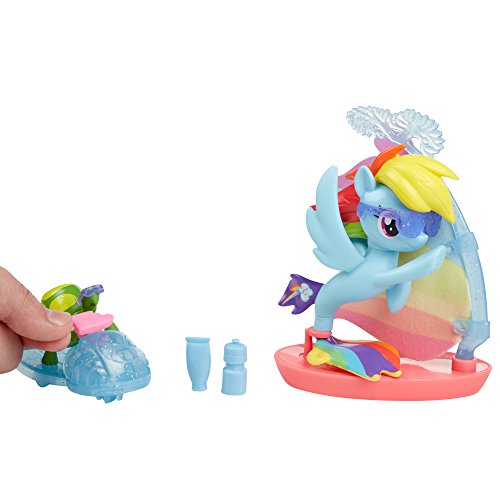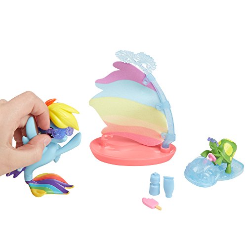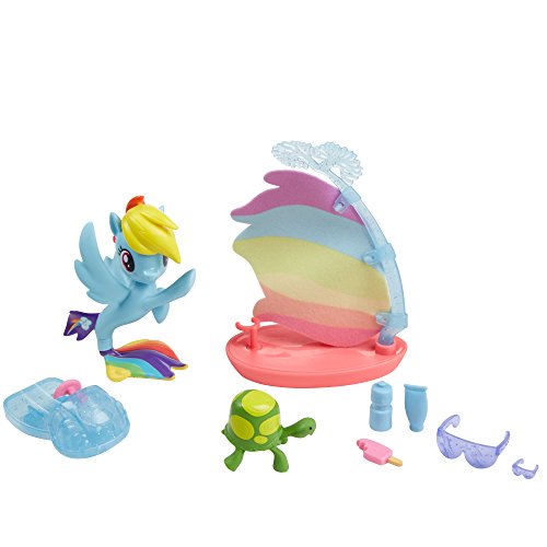 -. Feature : Imagine surfing stories with board and sail vehicle / Includes beach themed accessories / Pet turtle figure fits into scooter / Rainbow Dash seapony figure / Inspired by My Little Pony: The Movie / Includes seapony figure, pet figure, 2 vehicles, and 7 accessories. Ages 3 and up.