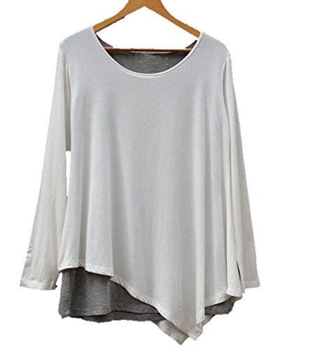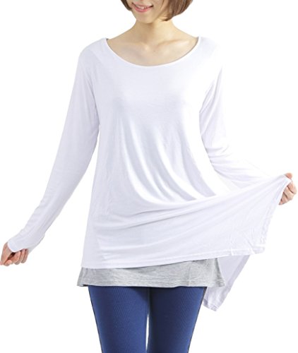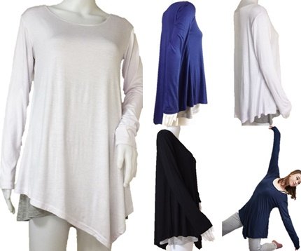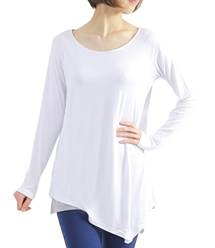 원본상품명: トップス ヨガウェア長袖Tシャツ 着丈長めのアシンメトリ?2重構造 白