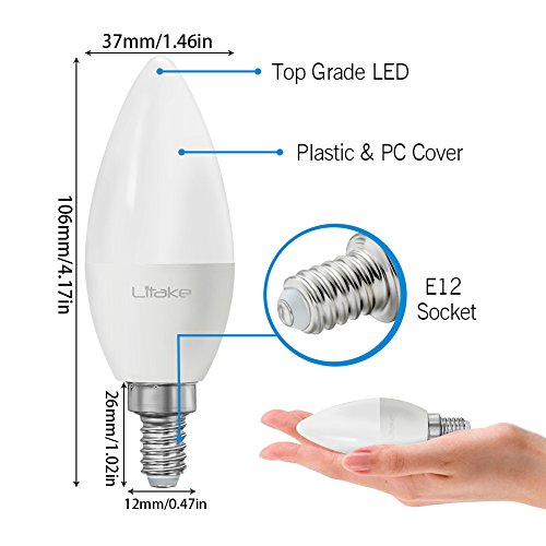 ✔ HIGH QUALITY LEDS: One 6W Litake E12 bulb is equal to a 60W normal incandescent bulb, save up to 88% on your electricity bill. High-efficiency LEDs output 500 lumens 5000K daylight white light, super bright but low heat, avoid electrical shock and fire hazard.