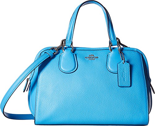 Updated in lightweight leather with a subtle pebbled texture, this softly structured satchel comes in a rich array of colors. The charmingly sized mini is finished with pretty ring hardware and dimensional strap anchors inspired by archival Coach designs.