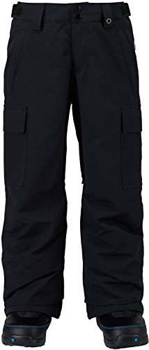 Studio : Burton Snowboards Publisher : Burton Snowboards Binding : Apparel Product Description For team riders and rookies alike, the bestselling boys' Burton Exile Cargo Pant is an everyday winner with its classic style, versatile midweight warmth, and extra weatherproof/breathable DRYRIDE 2L fabric. Low-profile Thermacore insulation keeps heat cranked for all day (and night) sessions, while mesh-lined inner thigh vents prevent overheating. The fully loaded list of features also includes a built-in waistband adjustment, Leg Lifts to keep cuffs clean, and lots of pockets so they're always prepared. Shell:100% Nylon, Lining:100% Nylon, Insulation:100% Polyester. 0