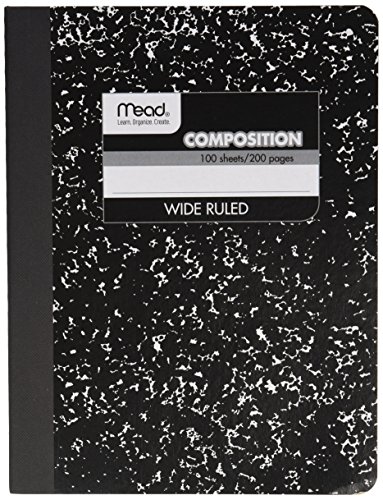 - Mead Composition Book is ready for any assignment - Grab it and go! Great for school and journaling. Book has 9.75 x 7.50 inch wide ruled white sheets, black marble cover.