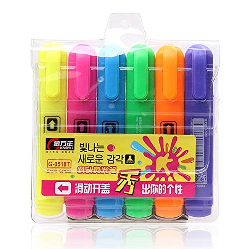 Title : Genvana 6 Colors Per Box Fluorescent Pen Highlighter Flat Shape Maker Pen
