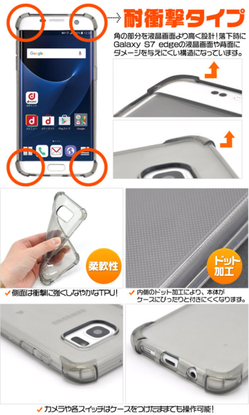 落下時にGalaxy S7 edge SC-02H/SCV33液晶画面や背面にダメージを与えにくい構造になっています。