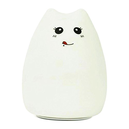 Wish House Cute Cat LED Baby Kids Night Light Silicone 7-Color Flashing Lamp USB Rechargeable Lighting (Naughty Cat)