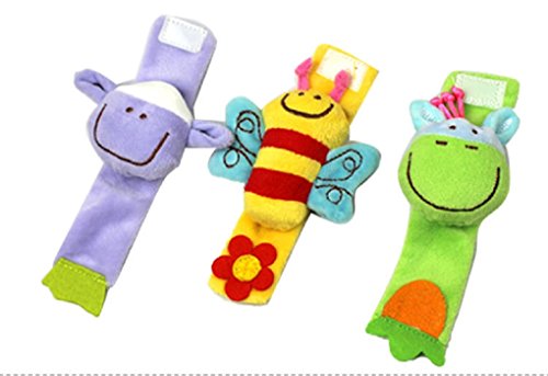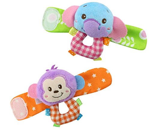 Hand Wrist Baby Toys Soft Infant Strap Rattles Developmental Toys (Elephant & Monkey 2 PCS)