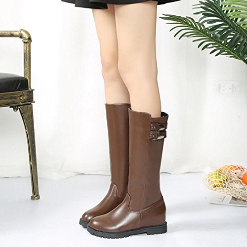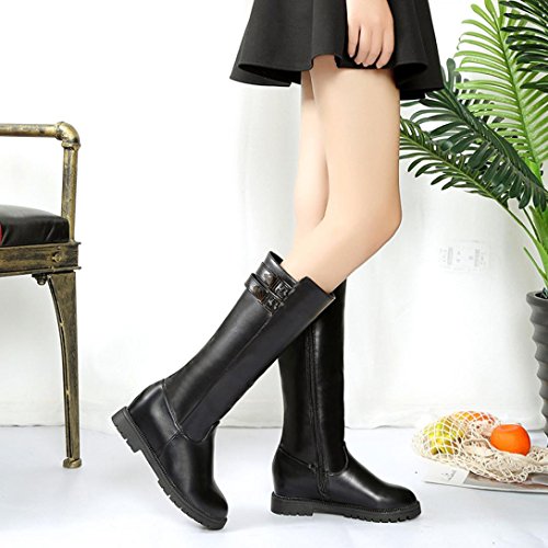 Product information: Gender: Women,Girl Material:PU leather Sole Material:Rubber Style: Fashion,Small fresh,Feminine charm Item Type: Boots Heel Shape:Flat Toe Shape: Round head Shoes Heel High: 2.5cm 3cm(Increased ) Boot height:31c Waterproof Platform: No Appropriate Season: Spring,autumn,winter Occasion: IndoorOutdoor,Fashion,Leisure Package: 1 Pair Women Shoes(not including shoebox) NOTE: As different computers display colors differently,the color of the actual item may vary slightly from the above images.