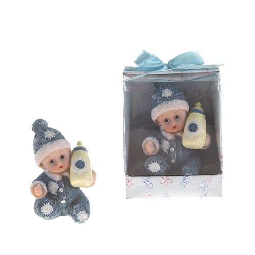 -. Feature : Baby in Winter Clothes Holding a Bottle Favors - Blue, Set of 12 / Baby wearing winter clothes while holding a baby bottle / Comes encased in an appealing gift box with clear plastic front and a satin ribbon bow / These favors are designed for gifting right out of the box and will leave an everlasting memory on your guests / Made of Poly Resin