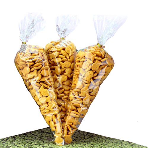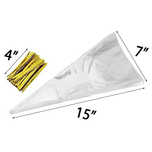 - Color: As clear as glass of the cone bag, golden of twist-ties