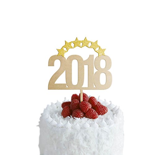 Cup Cake Topper New Year Natural / Glitter Foamy Gold Laser Cut MDF 1 Pc